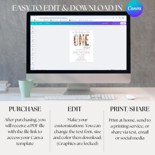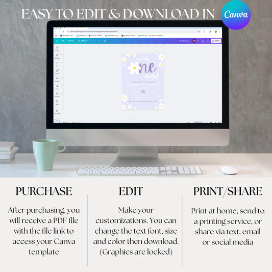 Isn't She ONEderful Invitation First Birthday Invite Girl 1st Birthday Retro Birthday Invite Flower Birthday Invite Canva Template