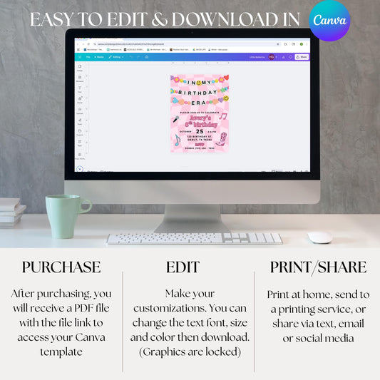 Girls Birthday Invite Era Birthday Invitation Girls Music Invite Birthday Era Party Invite Era Invitation Editable Template Digital Download