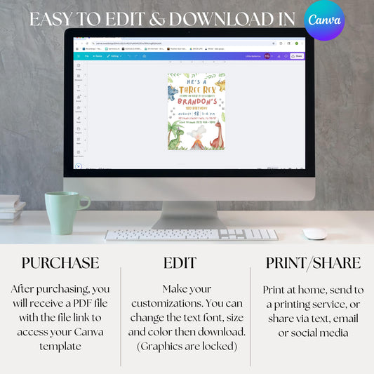 He's a Three Rex Invite Boy Dinosaur Invitation Third Birthday Invite Boys Birthday Invitation Cute Dinosaur Invite Dinosaur Birthday Party