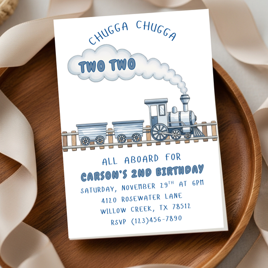 Chugga Chugga Two Two Birthday Invite Boys Train Birthday Editable 2nd Birthday Boy Invitation Printable Train Birthday Party Invitation