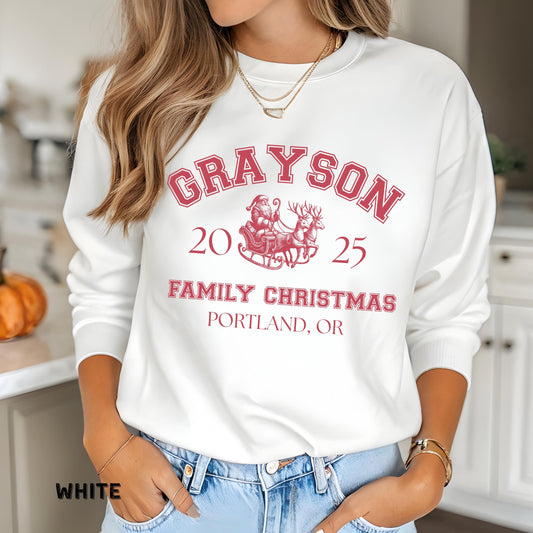 Custom Family Christmas Shirt Comfort Colors Matching Family Christmas Shirt Personalized Name Christmas Shirt Vintage Santa Varsity Shirt