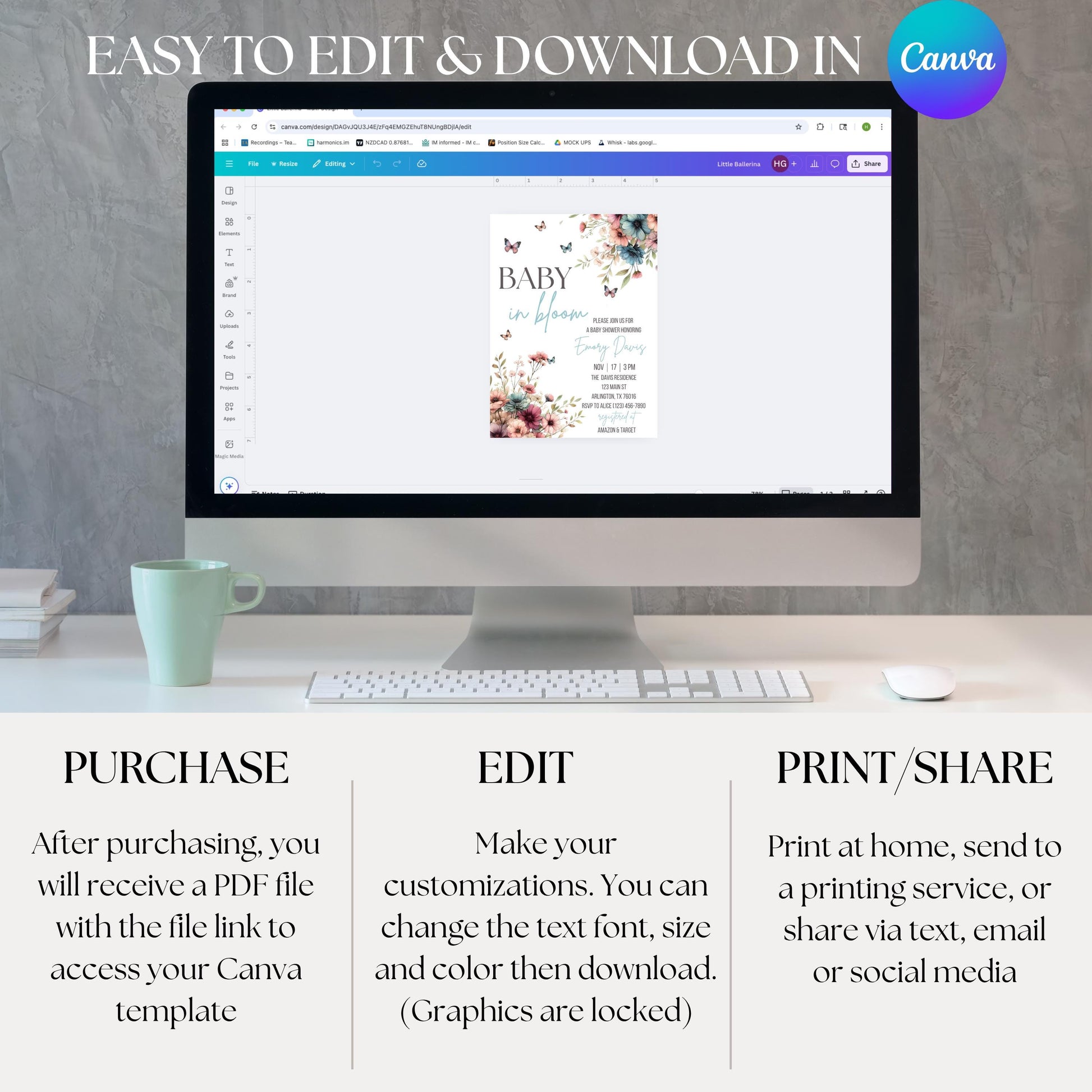 This editable Canva template allows you to quickly personalize the text, colors, and details to fit your special event. Whether you're throwing a baby shower for a little girl or a gender-neutral garden party, this beautiful invitation sets the perfect tone.