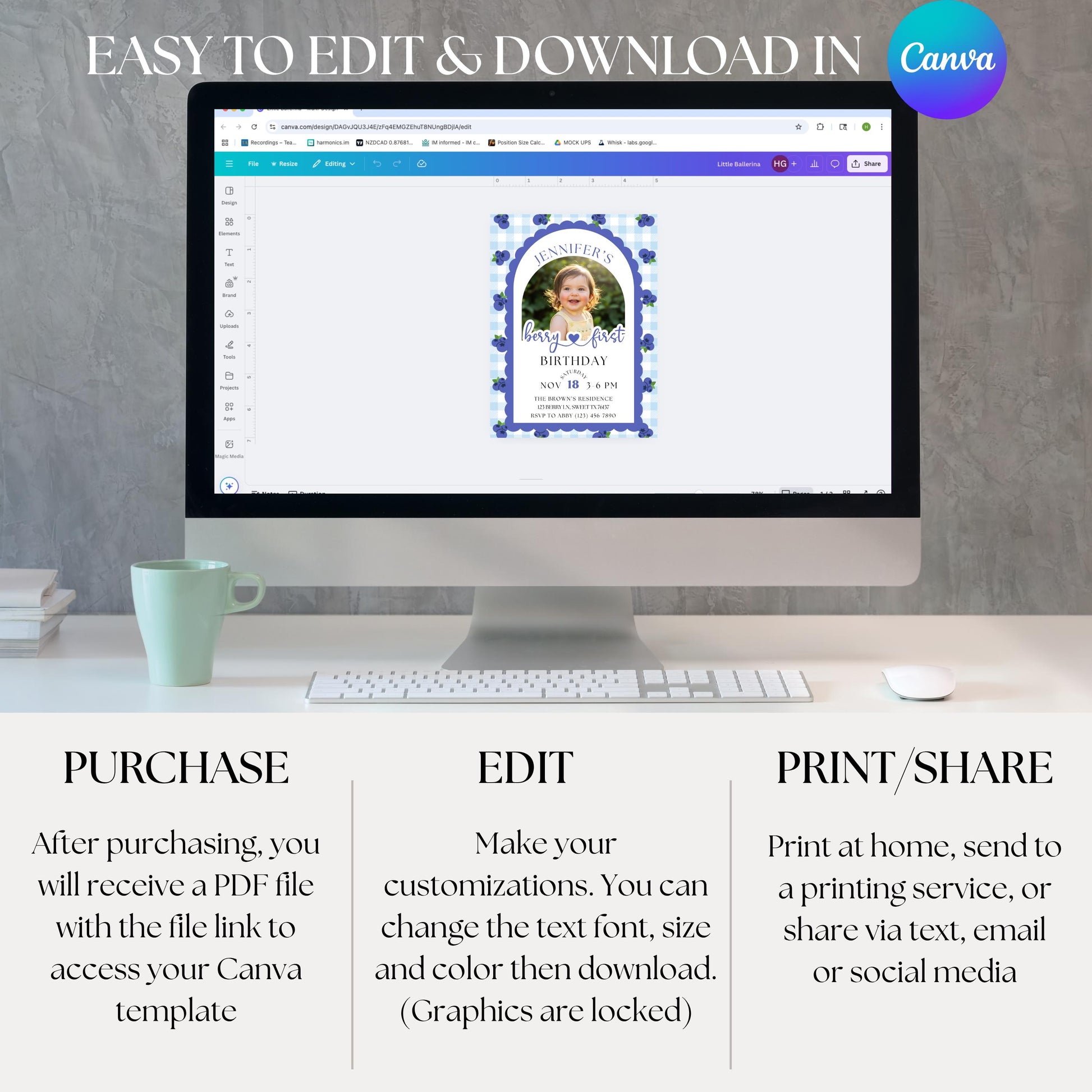 For the best experience, I recommend using a laptop or desktop to edit your template. While mobile and tablet editing is possible, Canva’s mobile features are more limited and may be harder to navigate.