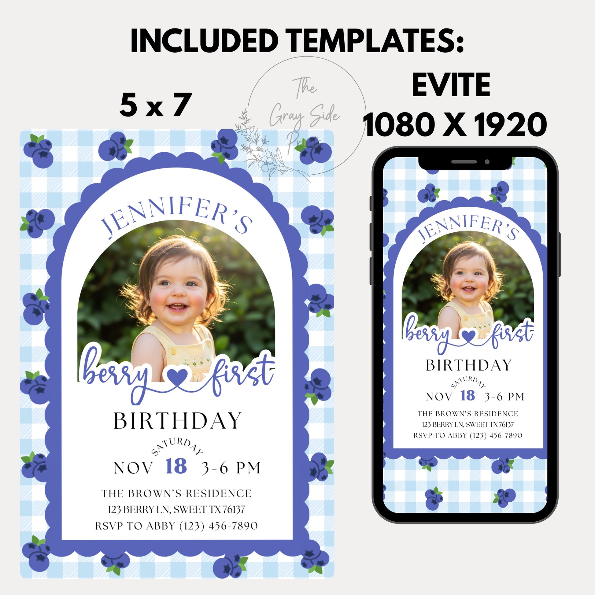 Berry First Birthday Invitation Editable Photo 1st Birthday Party Invitation Printable Blueberry Birthday Invite Girls 1st Birthday Template