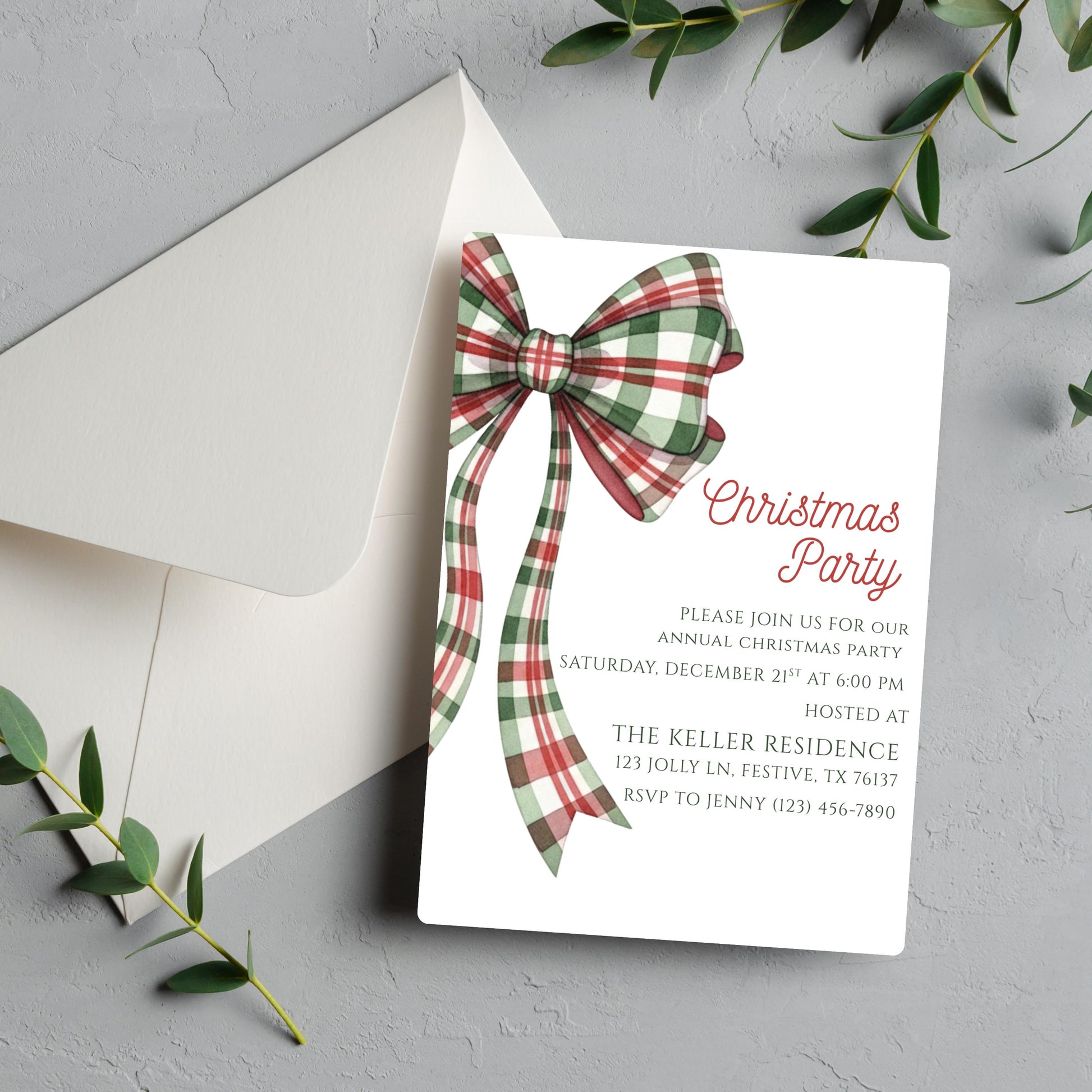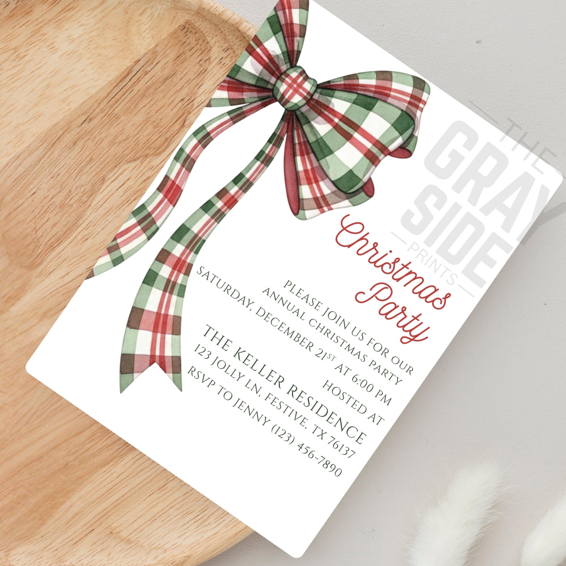 Christmas Party Invitation Christmas Plaid Bow Invite Christmas Party Template Holiday Party Digital Invite Christmas Bow Invite Download