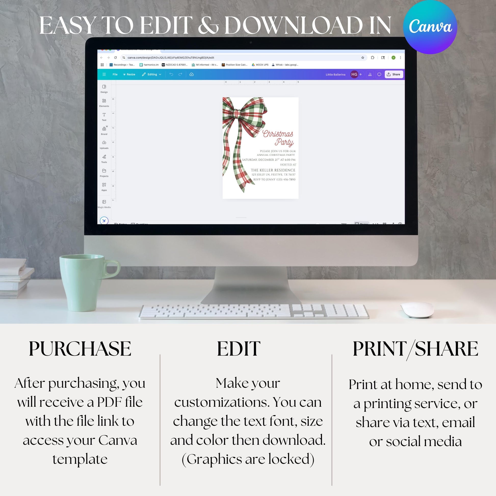 For the best experience, I recommend using a laptop or desktop to edit your template. While mobile and tablet editing is possible, Canva’s mobile features are more limited and may be harder to navigate.