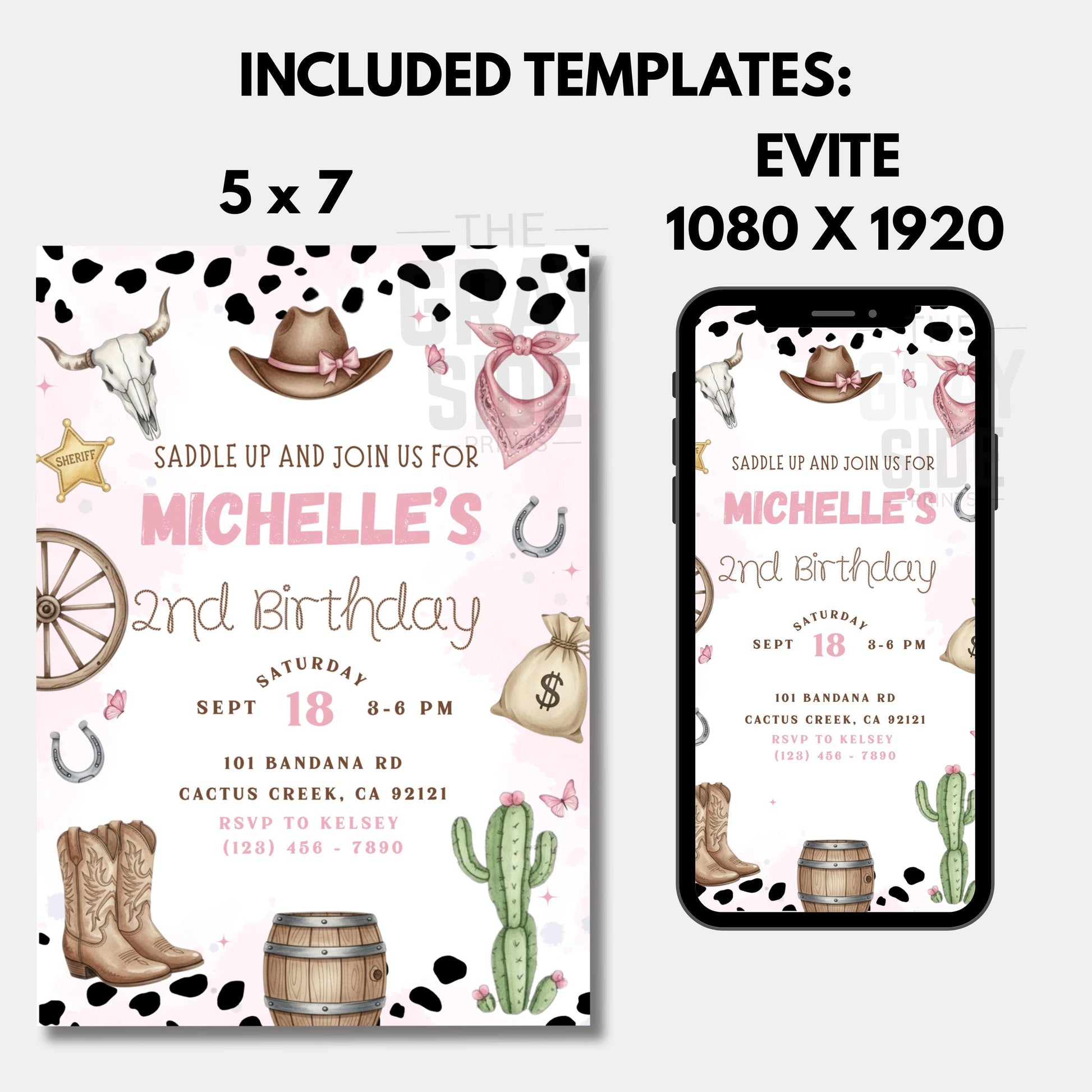 Cowgirl Birthday Invitation Girls 2nd Birthday Invite Editable Canva Template Girls Rodeo Invite Pink Rodeo Invite Digital Download