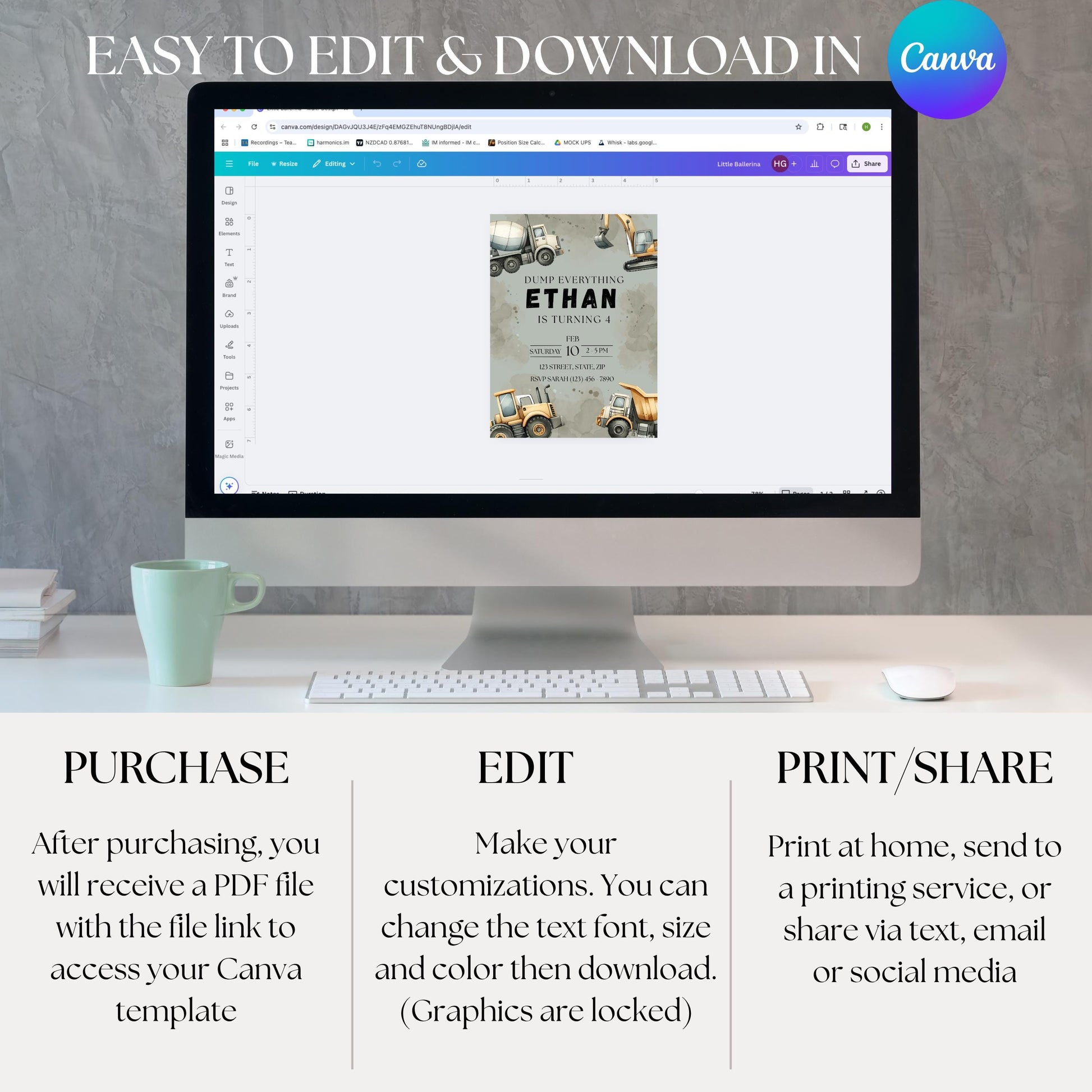 For the best experience, I recommend using a laptop or desktop to edit your template. While mobile and tablet editing is possible, Canva’s mobile features are more limited and may be harder to navigate.