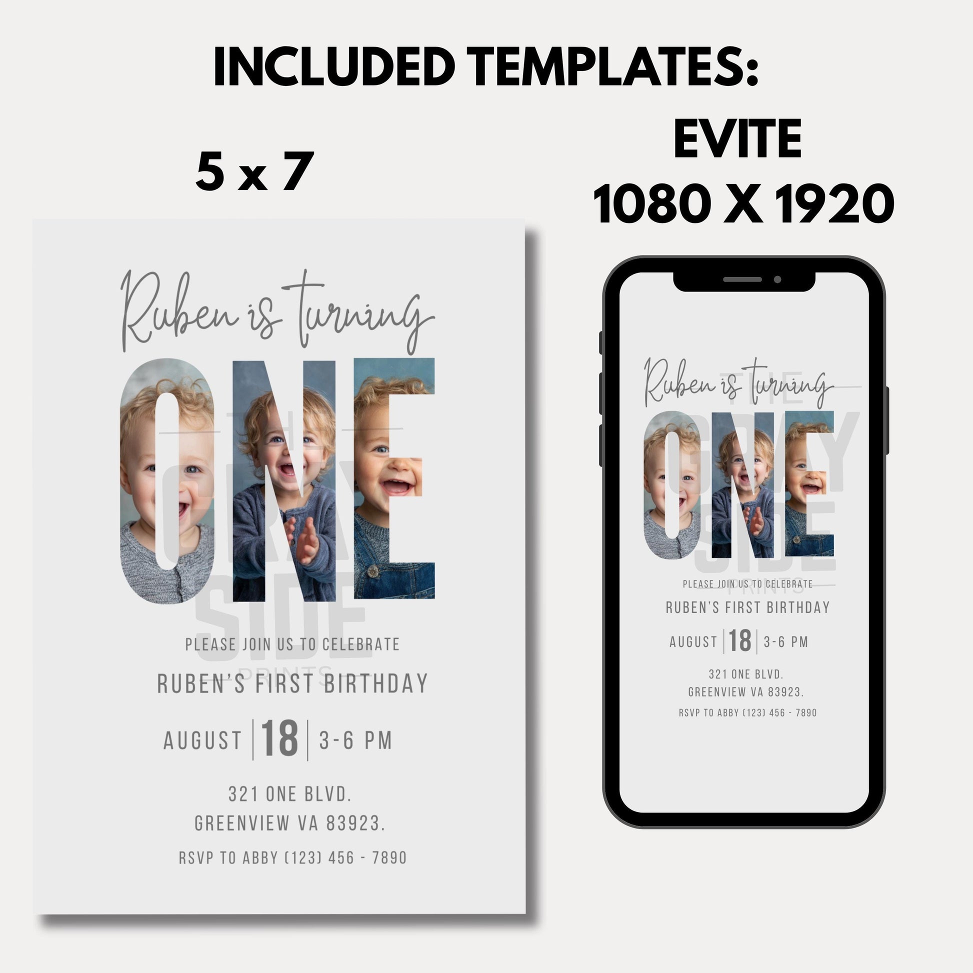 Editable First Birthday Invitation 1st Birthday Party Invite Minimalist Boho 1st Boy Birthday Girl Birthday Instant Digital Download One