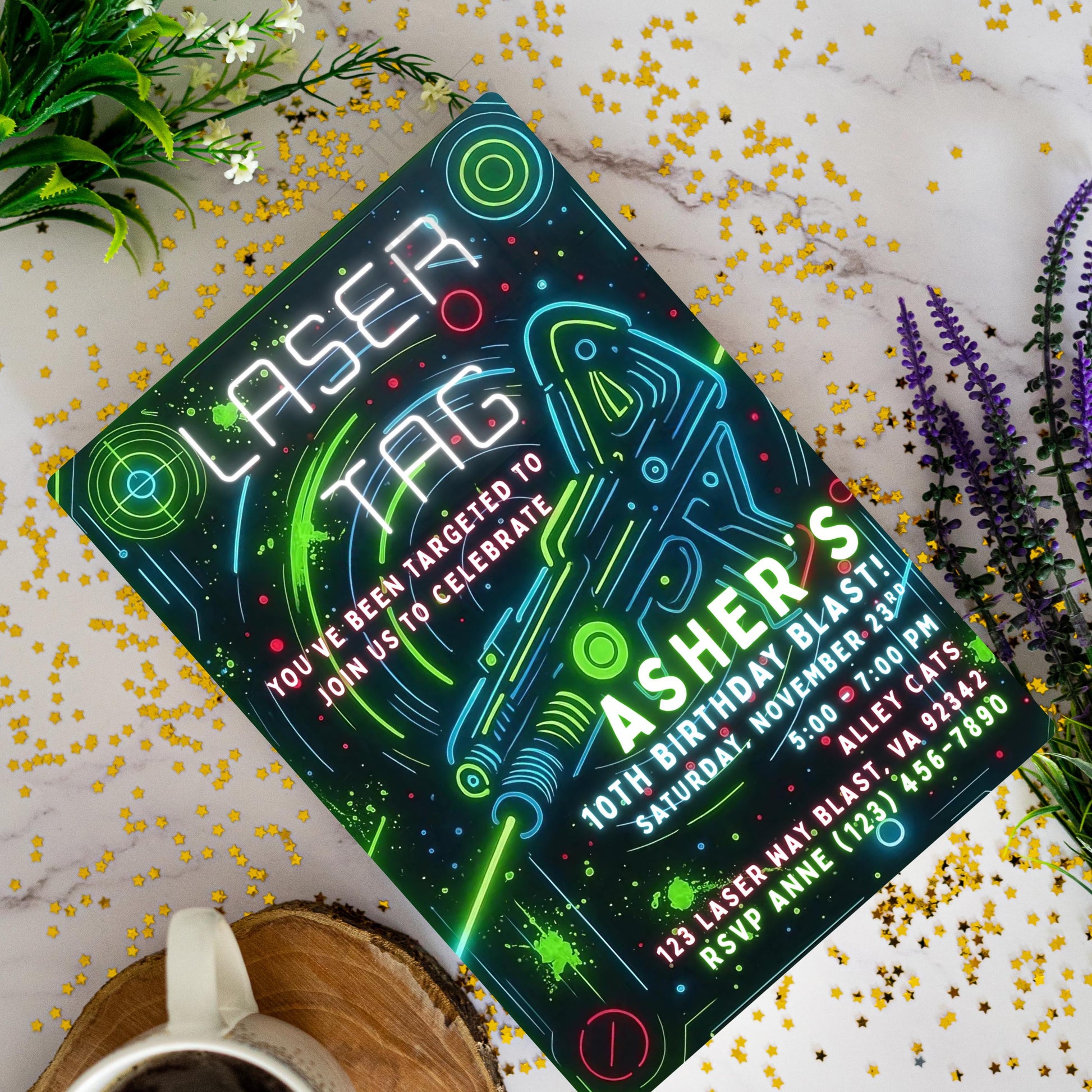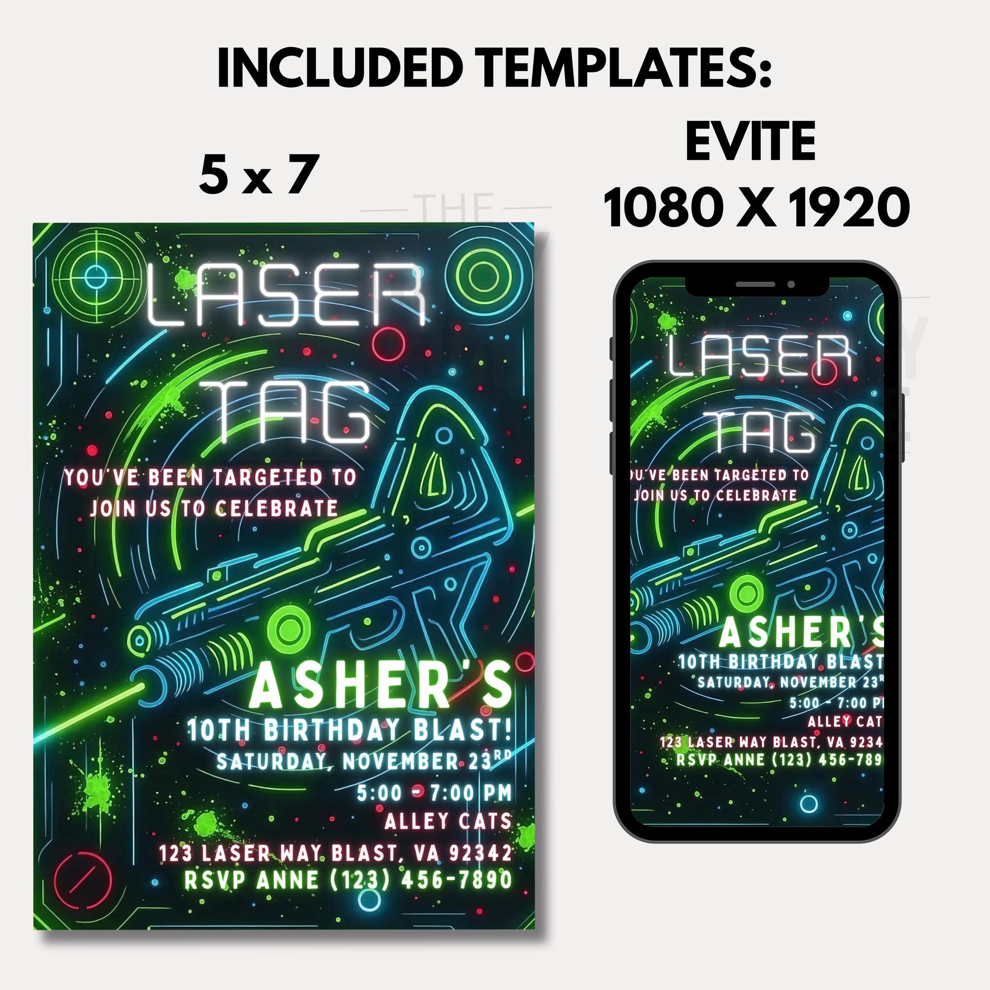 Editable Laser Tag Birthday Invitation Neon Laser Tag Invite Glow Laser Tag Party Boy Girl Digital Download Printable Kids Birthday Invite