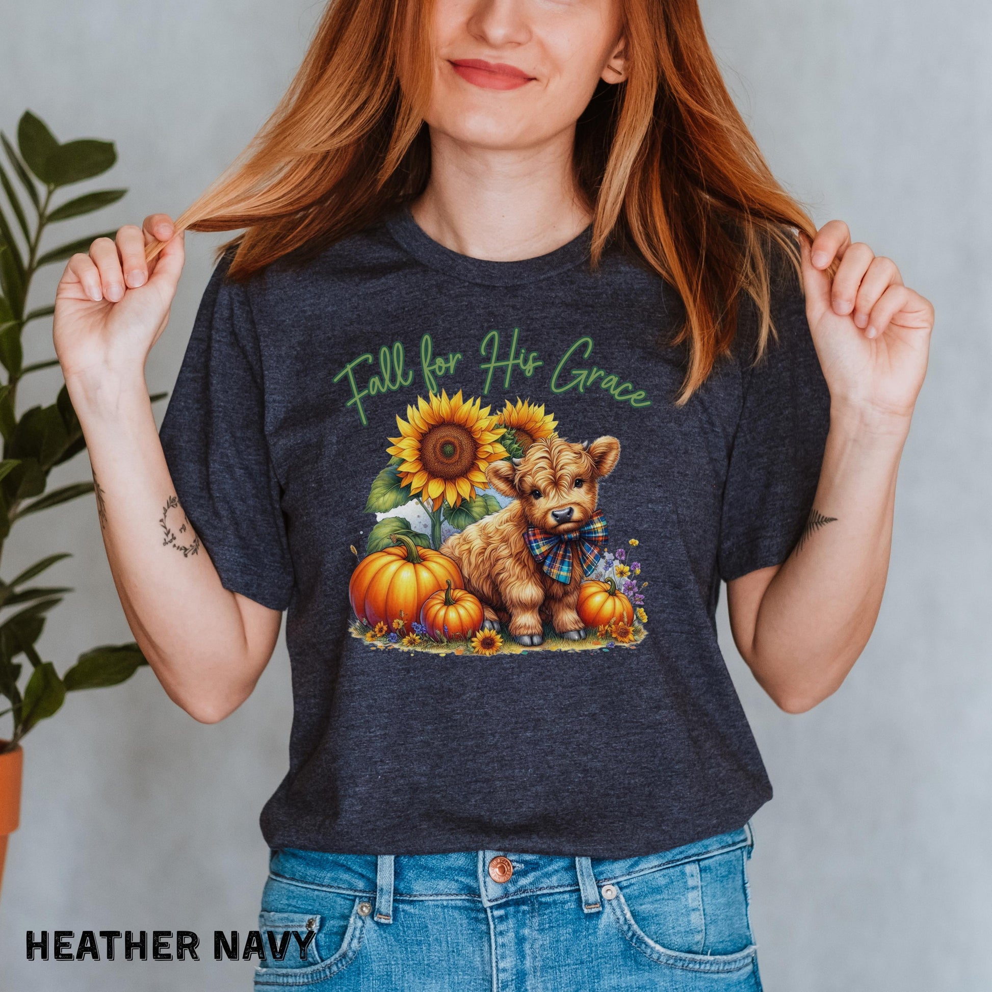 Fall for His Grace Christian Shirt Highland Cow Fall Shirt Pumpkin Shirt Faith Based Shirt Cute Fall Shirt Womens Shirts Bella Canvas Shirt
