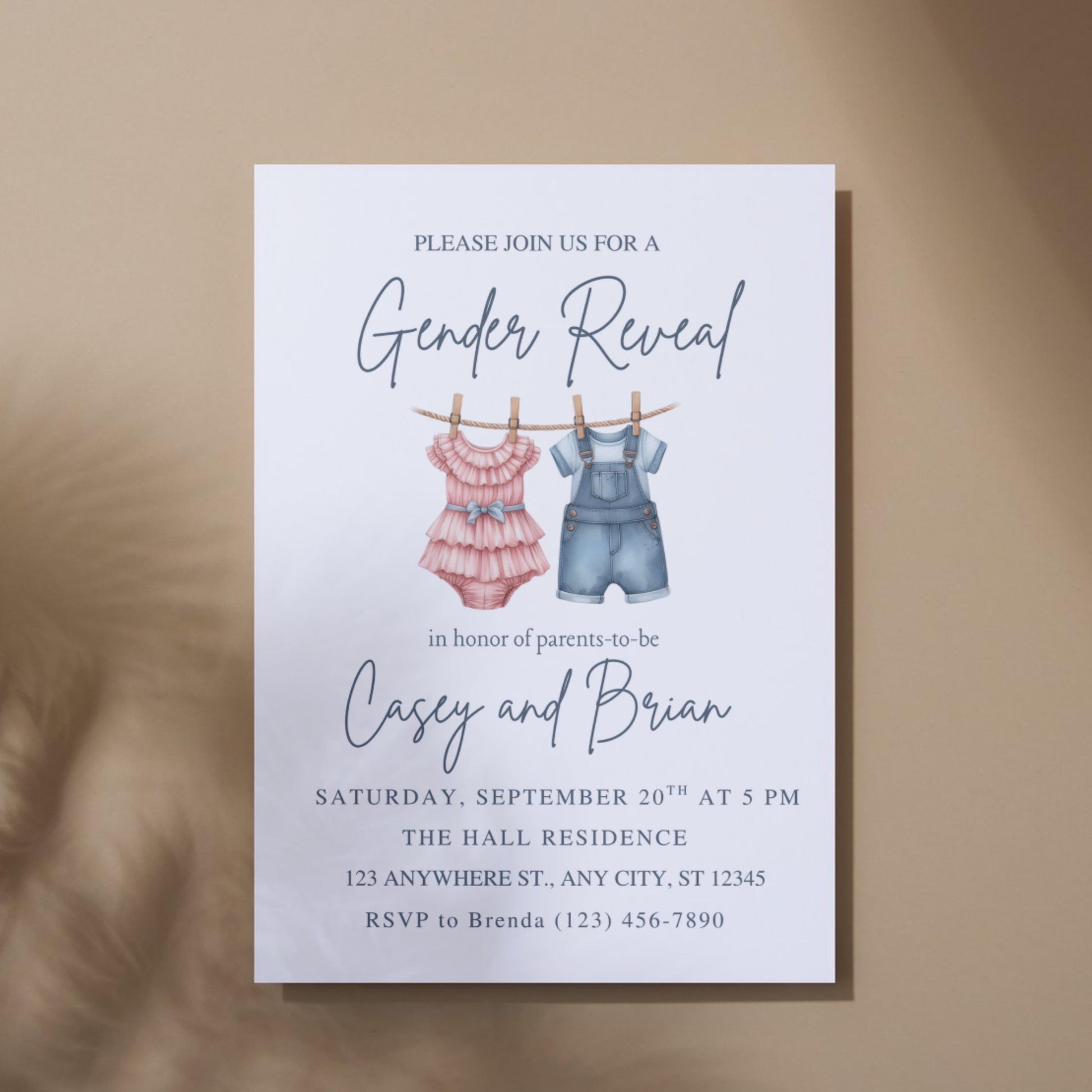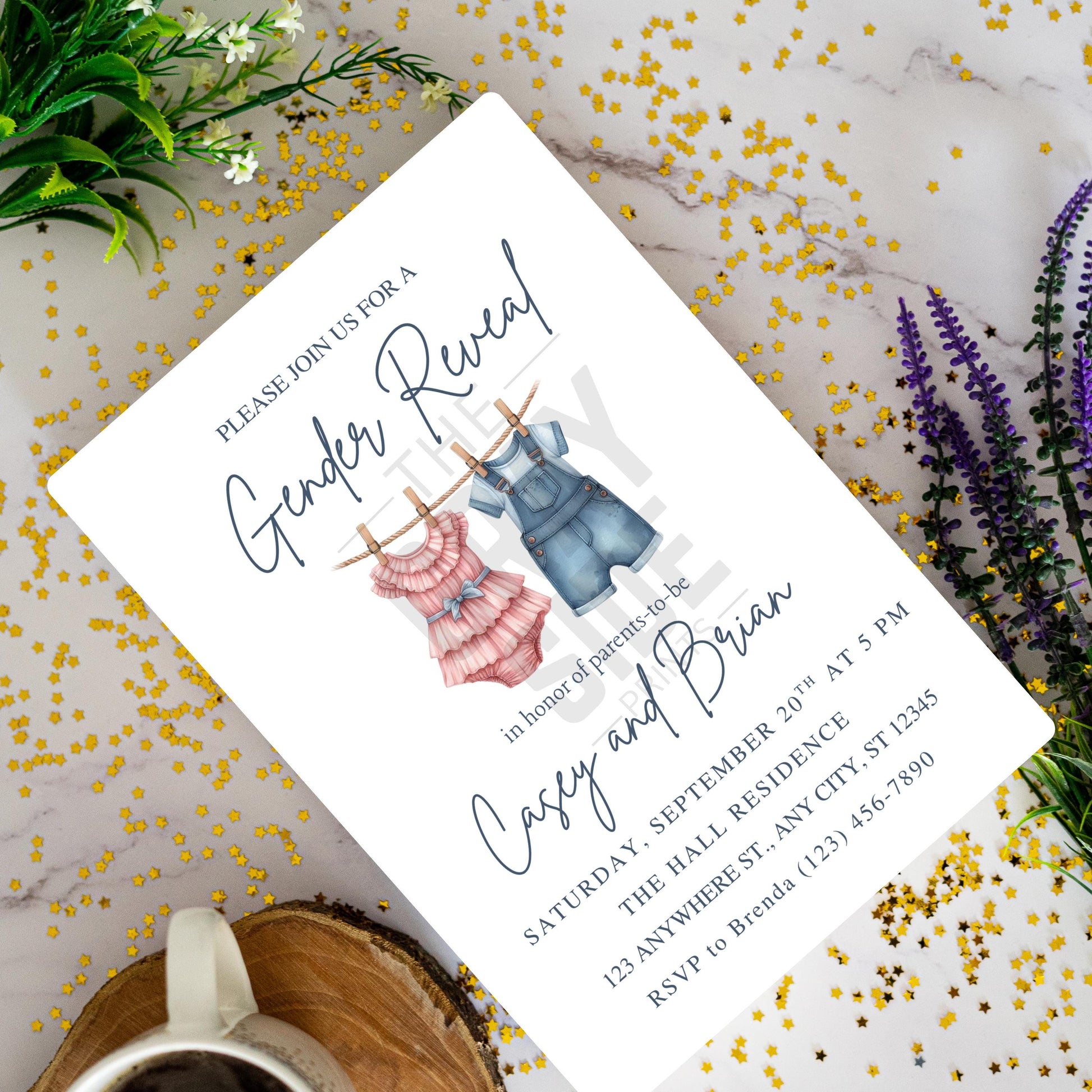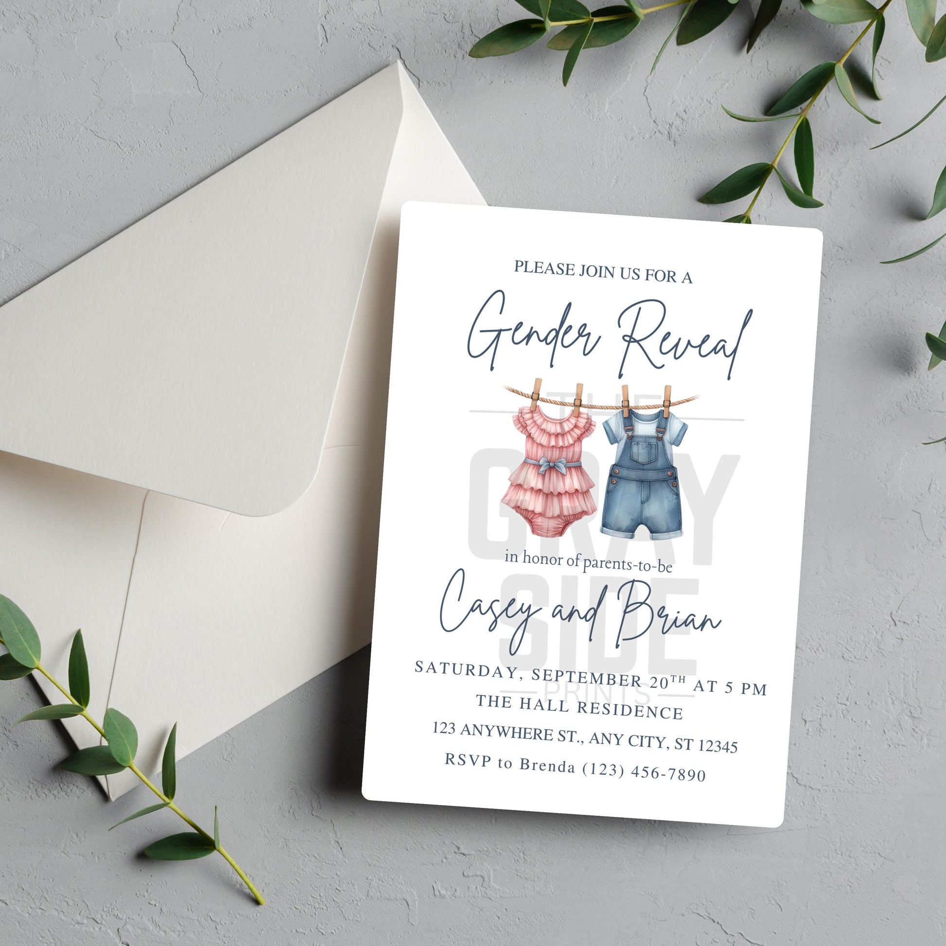 Gender Reveal Invitation Clothesline Gender Reveal Editable Download Boy or Girl Invite He or She Party Invitation Gender Reveal Party