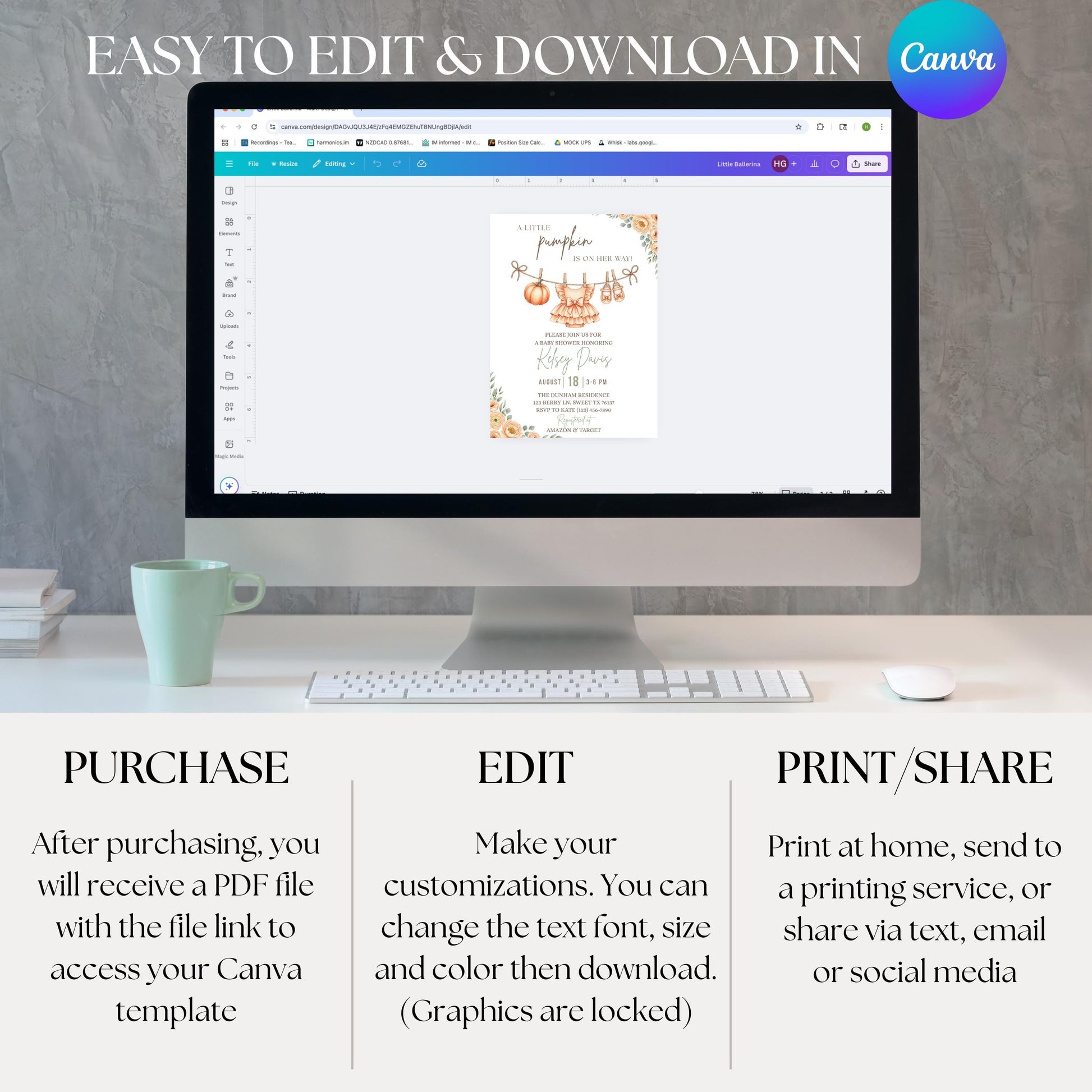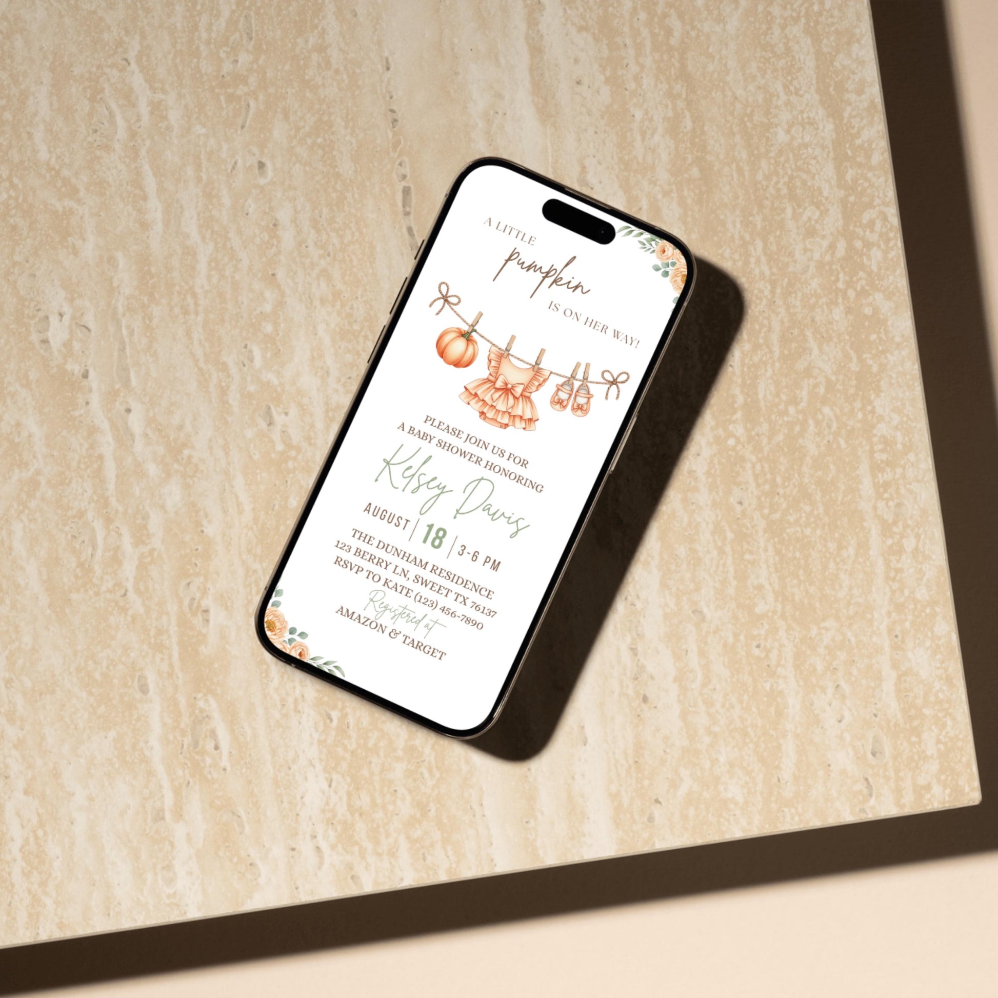 Little Pumpkin Baby Shower Invitation, Fall Baby Shower Invite, Editable Baby Shower Template, Printable Girl Baby Shower Invitation