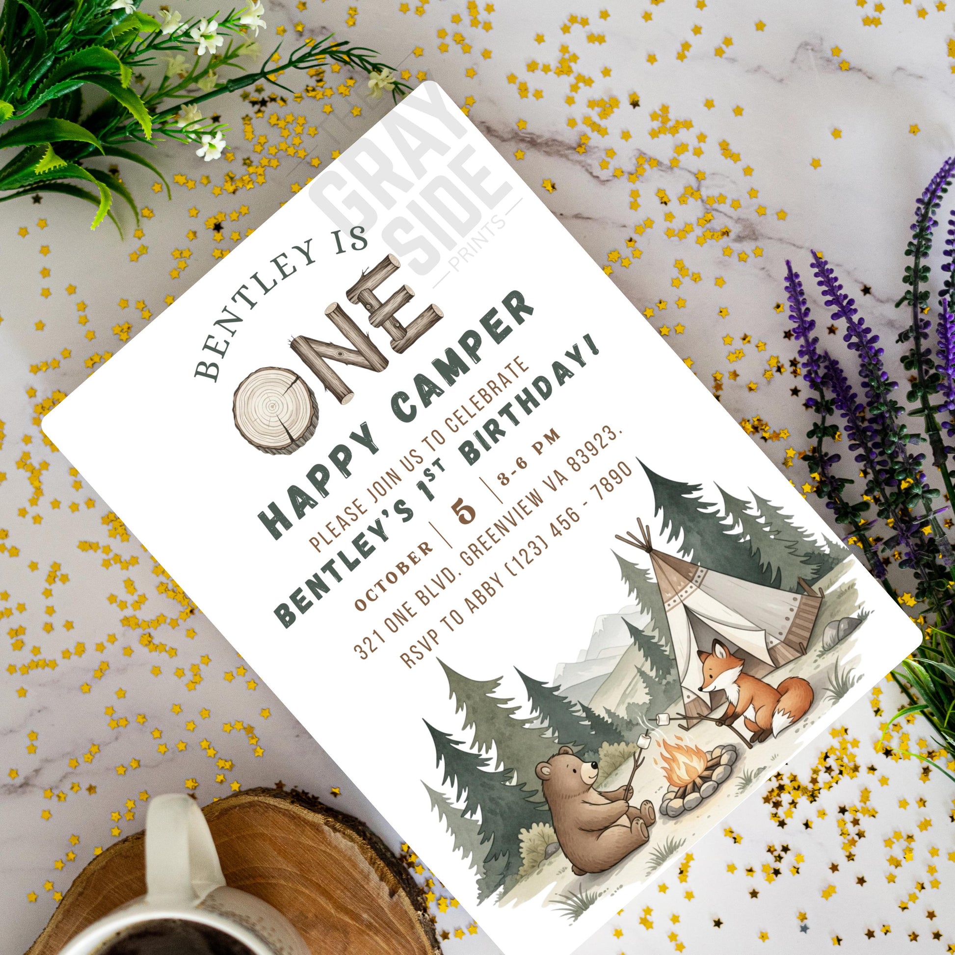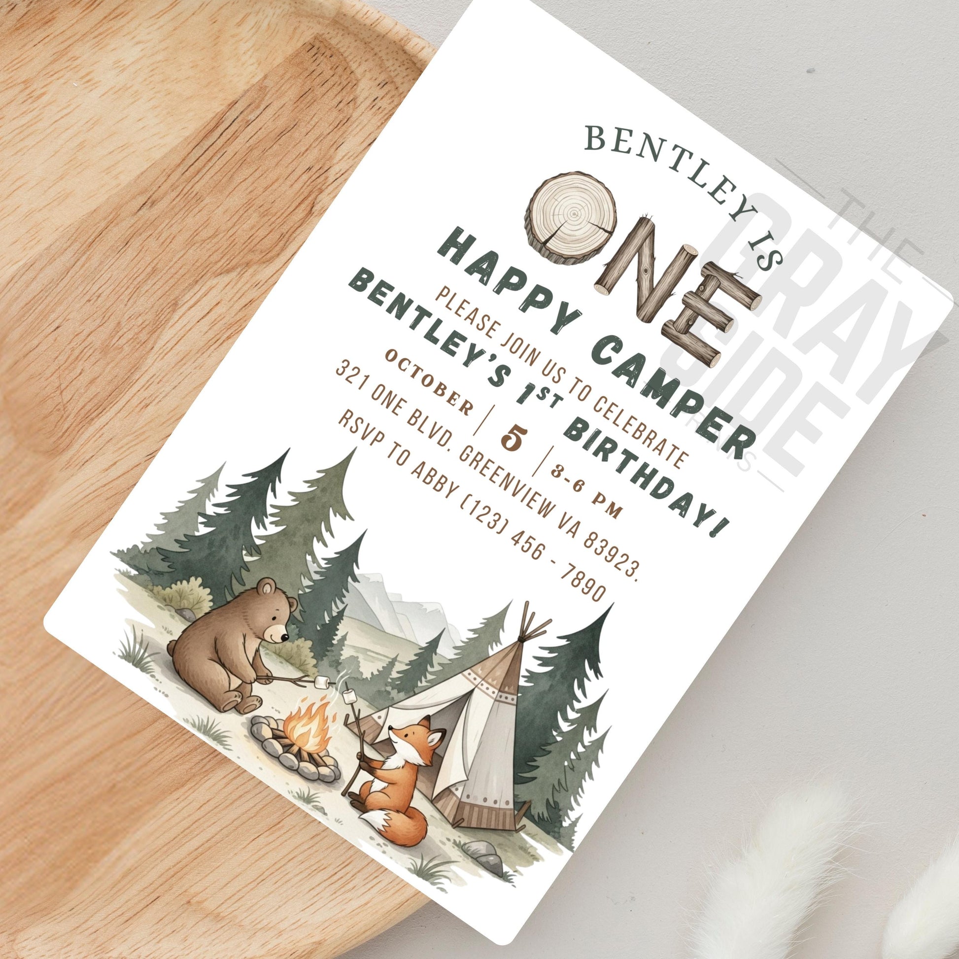 One Happy Camper Birthday Invitation Gender Neutral 1st Birthday Invite 1st Birthday Party Invite Editable Template First Birthday Invite