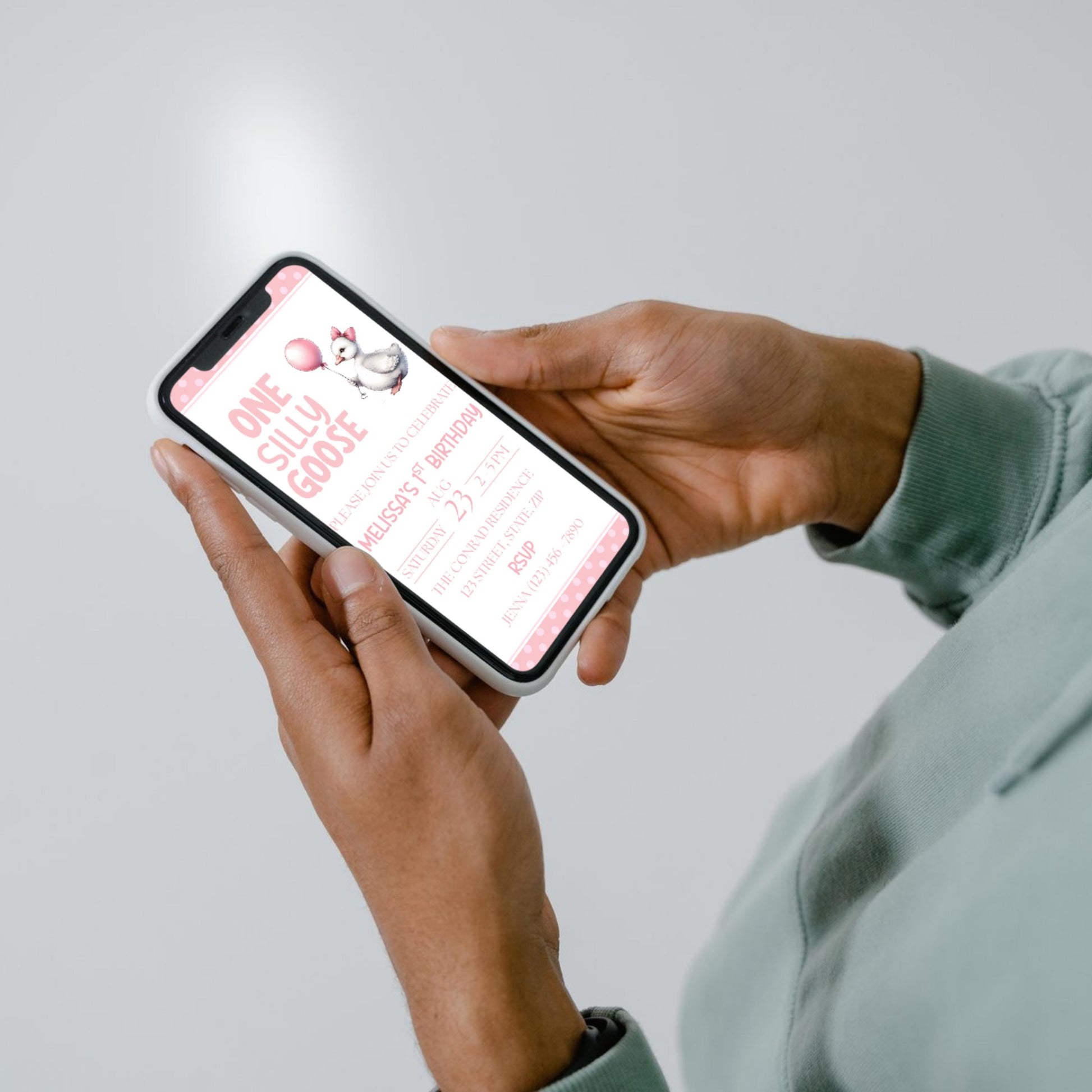 One Silly Goose Birthday Invitation 1st Birthday Party Invite Template Editable Pink Goose Invite Canva Digital Download Printable Invite