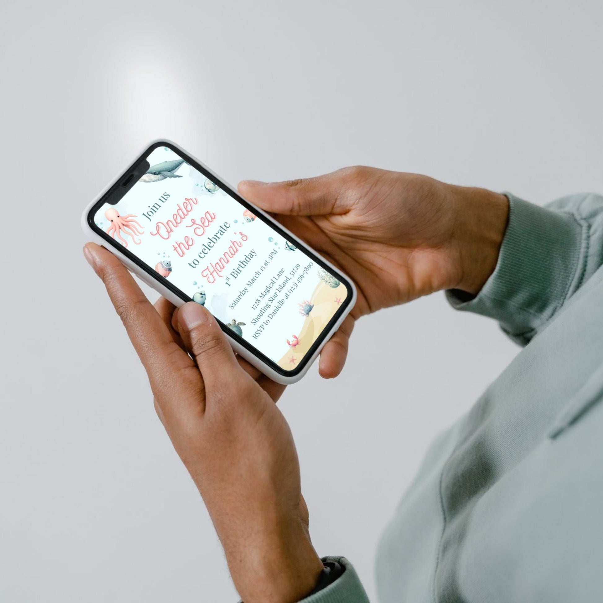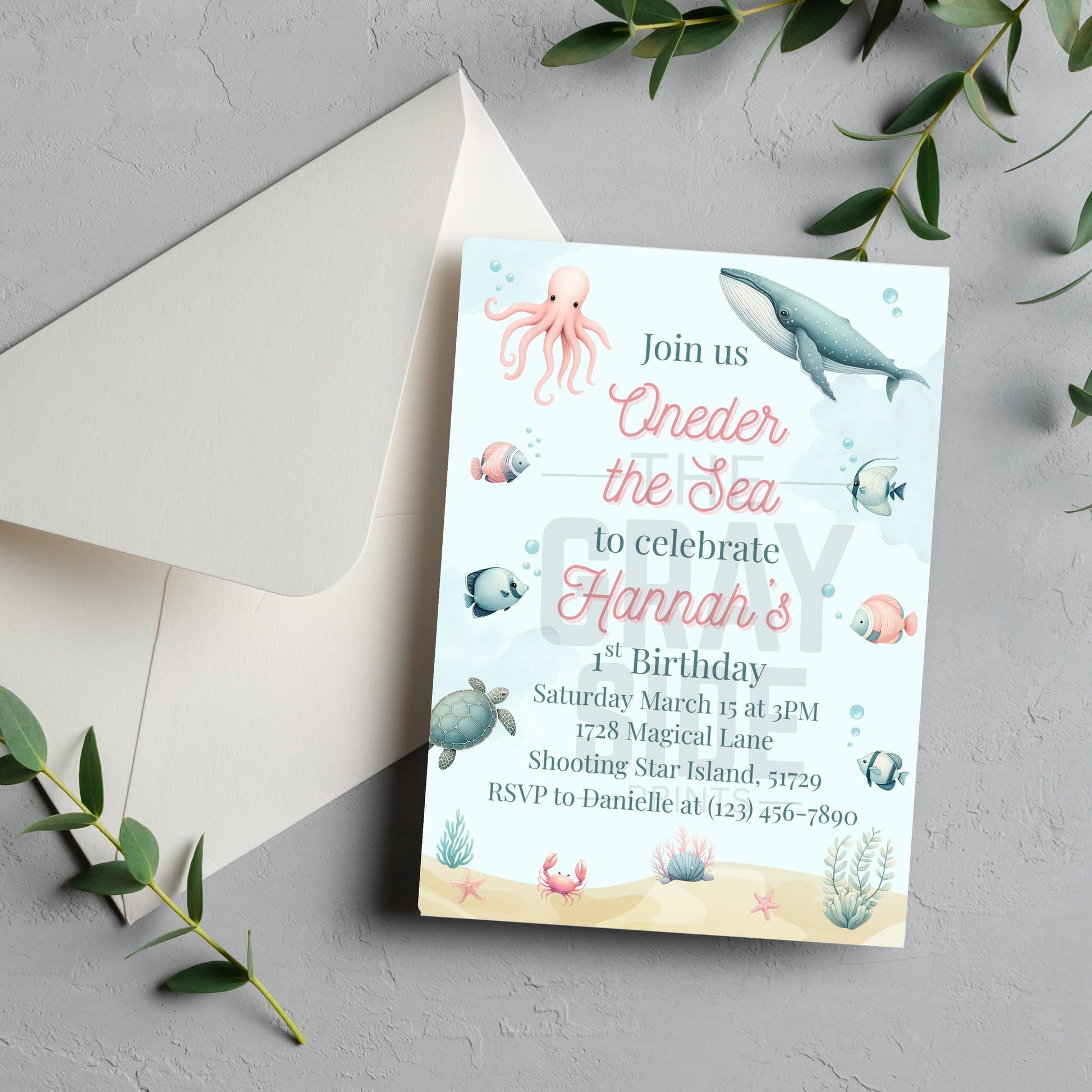 Oneder the Sea Birthday Invitation Ocean Birthday Party Invitation Printable Ocean Animals 1st Birthday Invite Editable Template