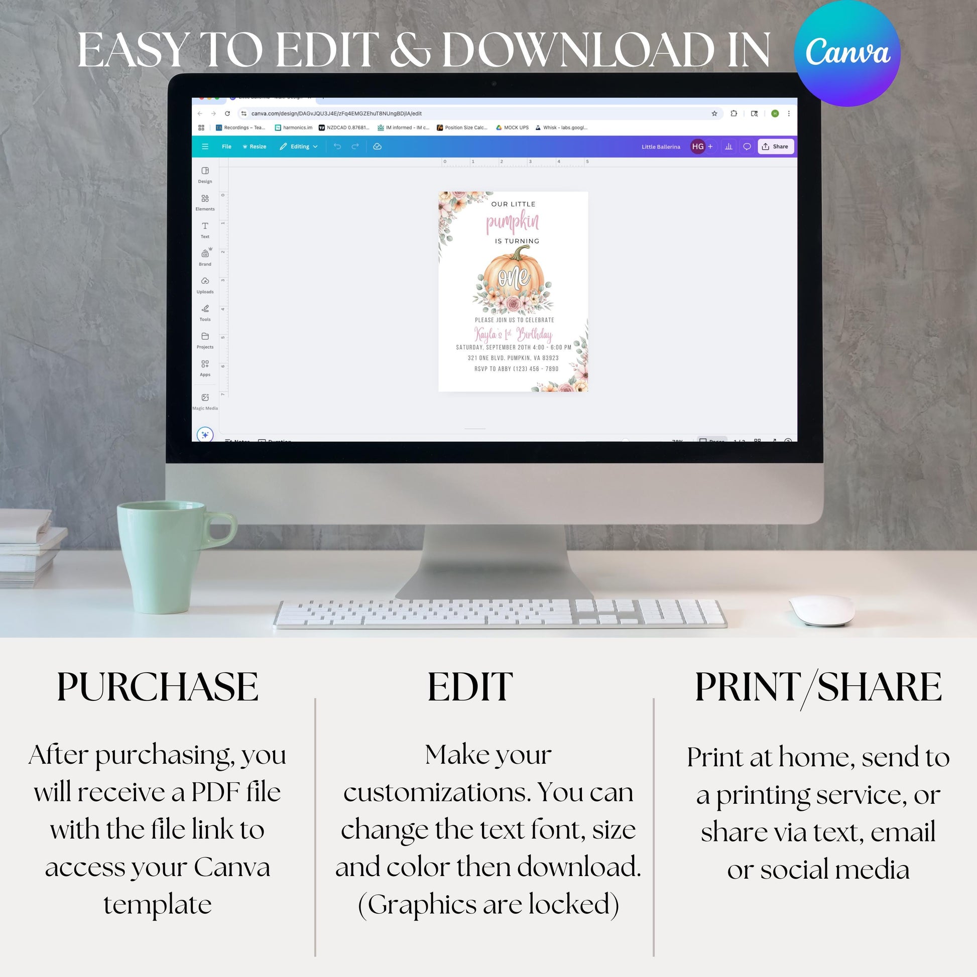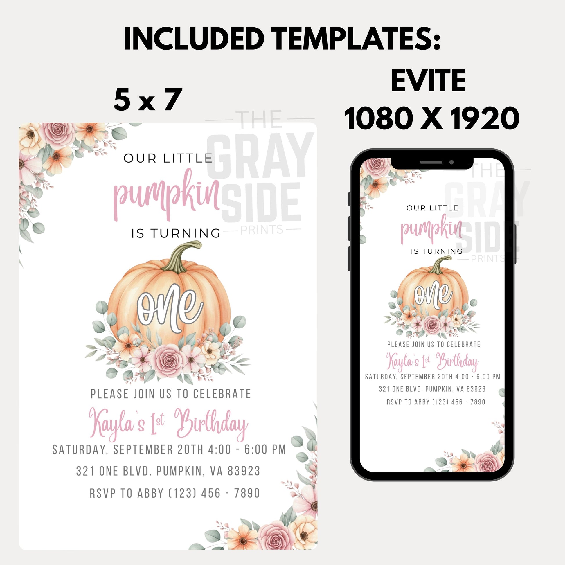 Our Little Pumpkin is Turning One Invitation First Birthday Invite Template Editable Fall 1st Birthday Invitation One Pumpkin First Bday