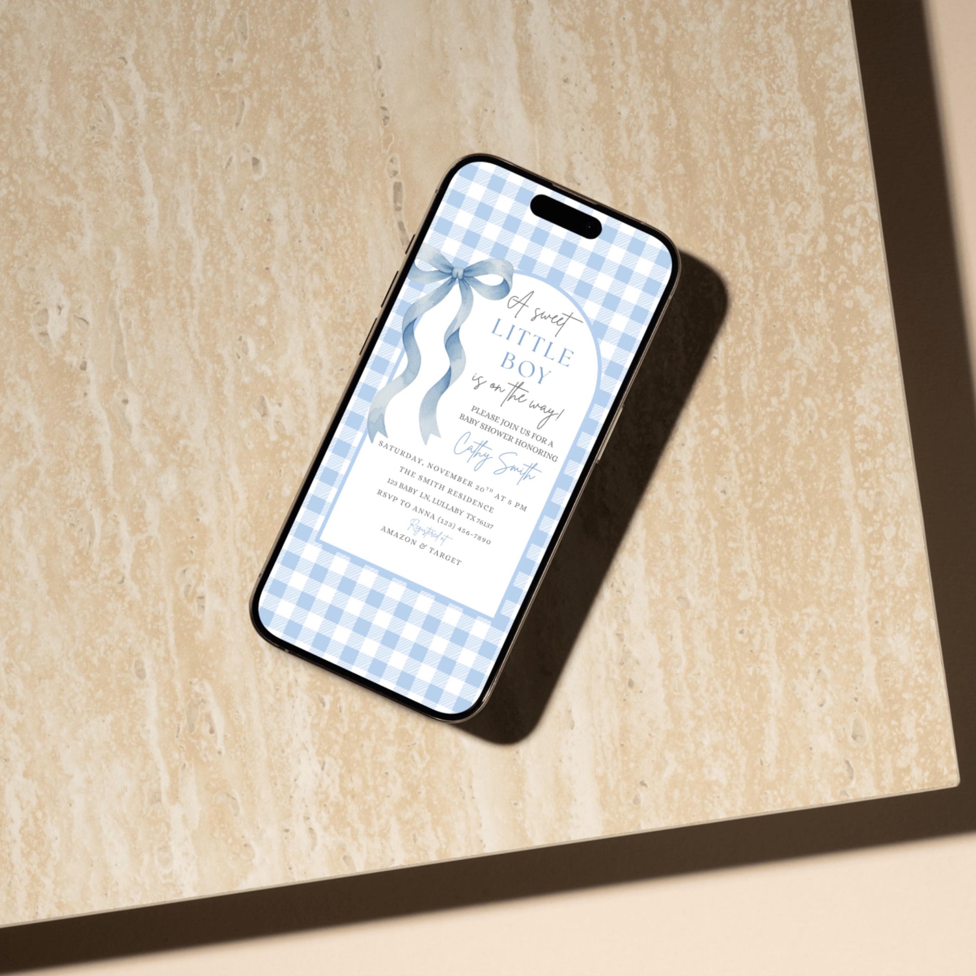 Sweet Little Boy Baby Shower Invitation Boy Baby Shower Invite Blue Gingham Baby Shower Invitation Baby On The Way Baby Shower Invite