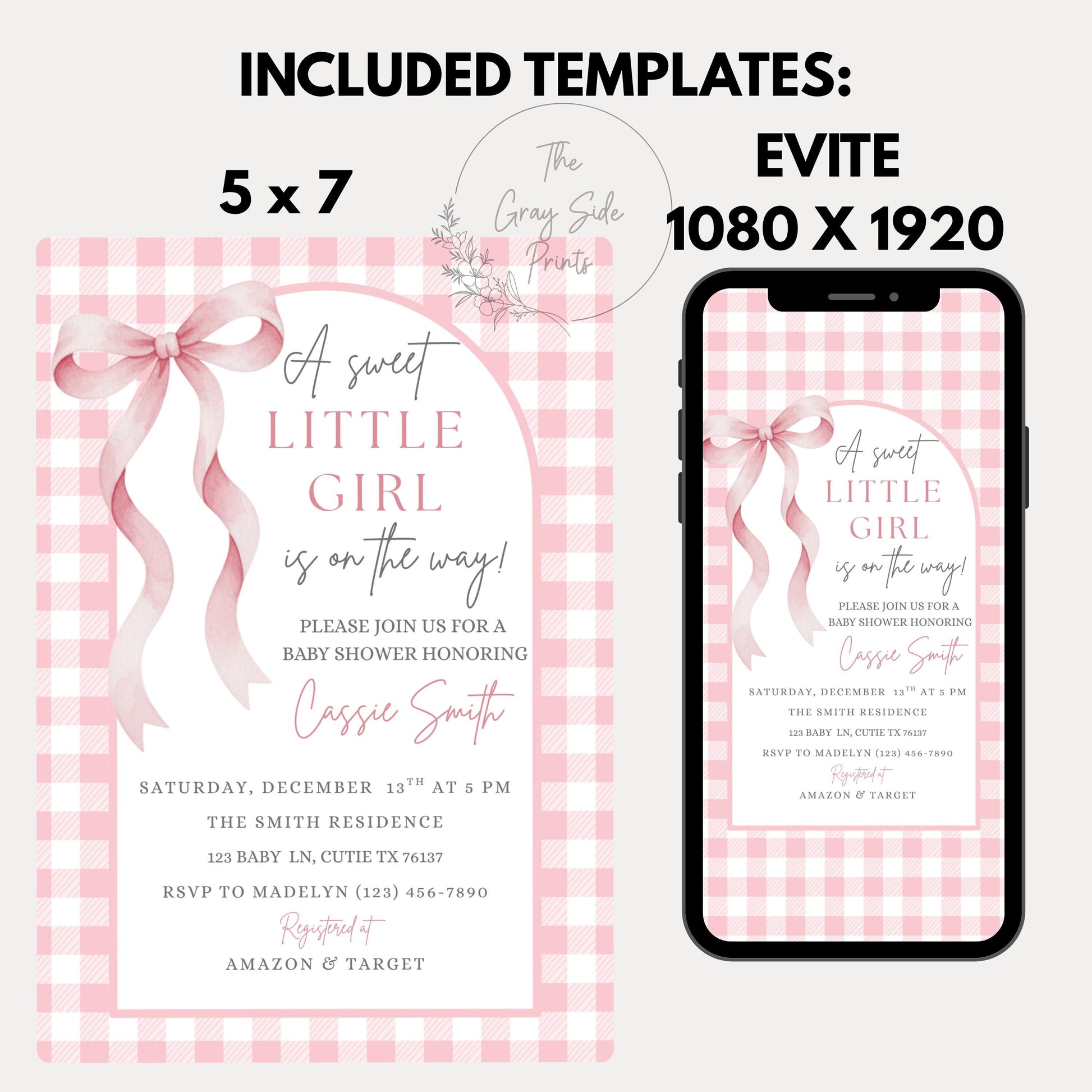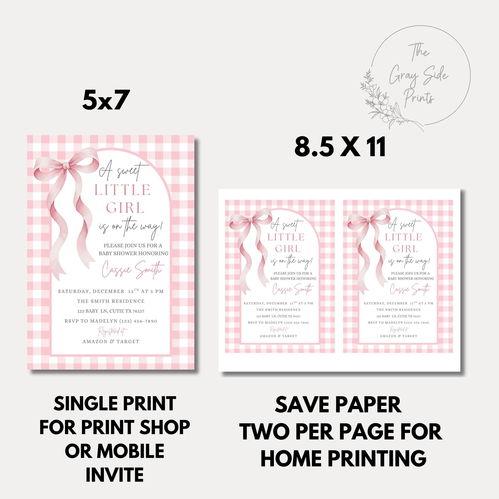 Sweet Little Girl Baby Shower Invitation Girl Baby Shower Invite Pink Gingham Baby Shower Invitation Baby On The Way Baby Shower Invite