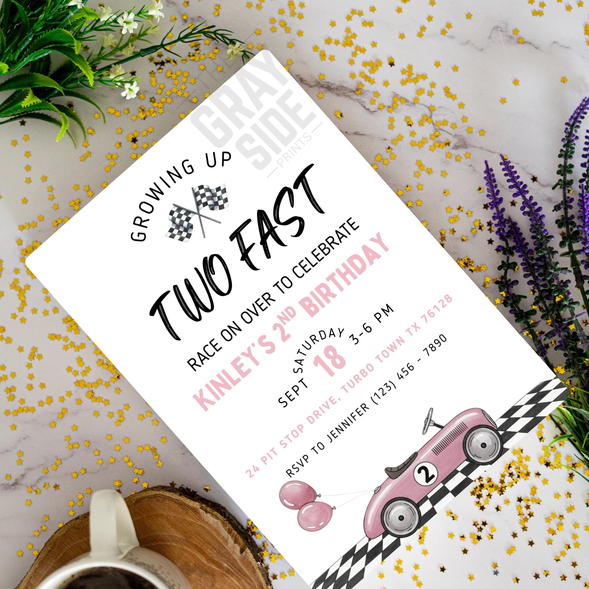 Two Fast Birthday Invitation Race Car 2nd Birthday Party Invite Editable Template Pink Car Birthday Girl Printable Instant Download