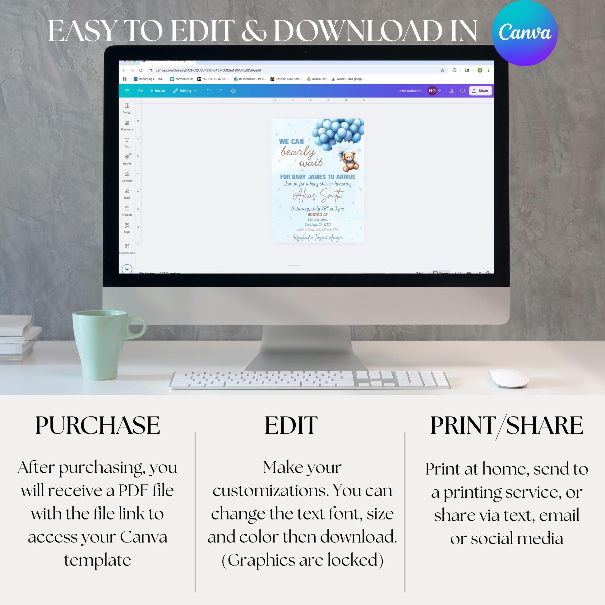 We Can Bearly Wait Baby Shower Invitation Boy Blue Teddy Bear Invite Template Editable Canva Baby Shower Instant Download Printable Invite